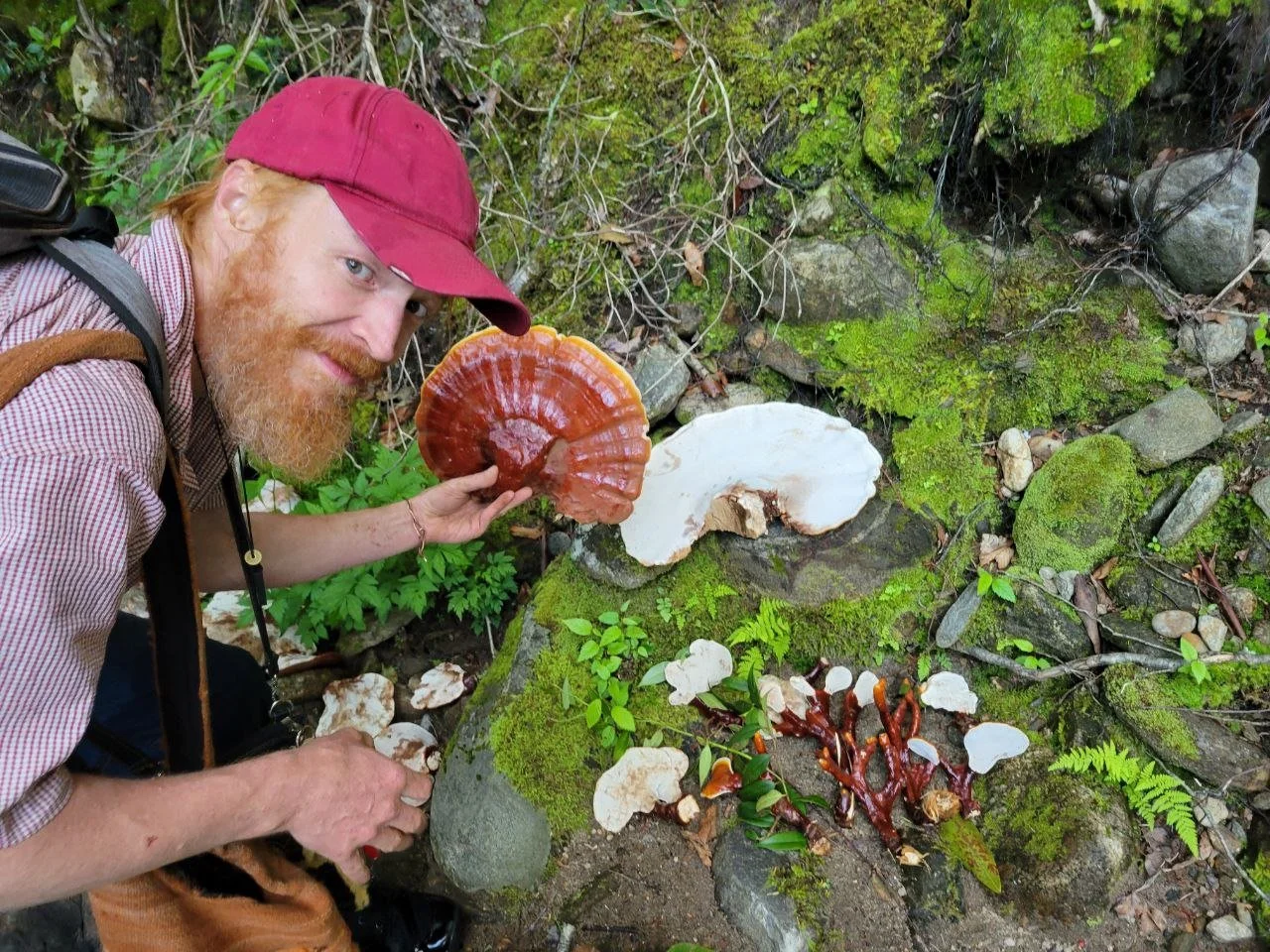Foraging in Action: Harvesting Reishi mushrooms and other forest treasures.